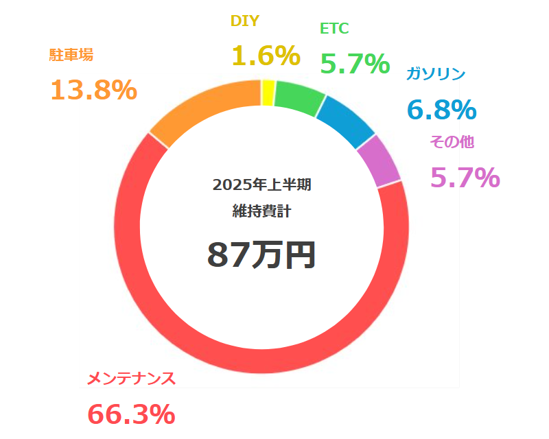 タイヤが20万、車高調が30万の計50万円という大金を使ったのでその影響でメンテナンス代が大きく伸びてしまっている。